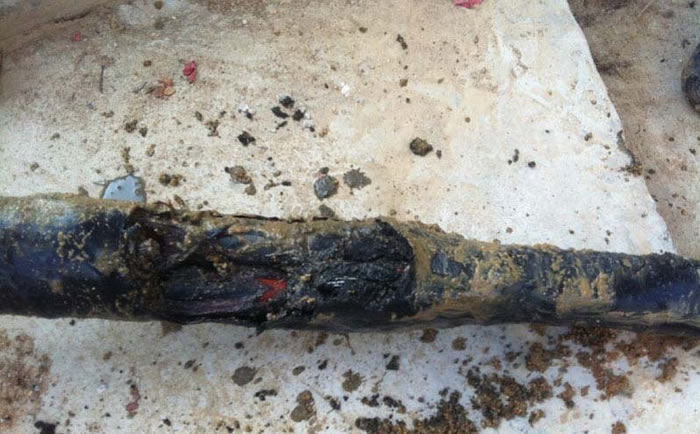 5. 絕大多數故障電纜在故障點處都有十分明顯的燒焦損壞現象。故障點在電纜外皮沒有留下痕跡的情況,十分罕見。